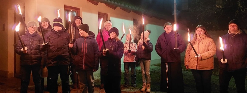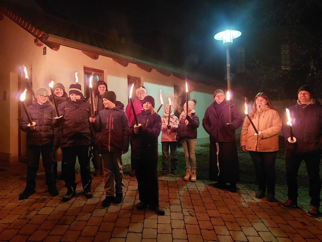 Ihre Adventsfeier gestalteten die Ober- und Niederviehbacher Ministranten in Form einer Fackelwanderung nach Hüttenkofen. Begleitet wurden sie dabei von Pater Adam, ihren Eltern und der Betreuerin Katharina Czoppik. Unterwegs hielt Pater Adam eine Andacht für die Kinder. Im Gasthaus Scheugenpflug angekommen, hatten sich alle eine Stärkung verdient.